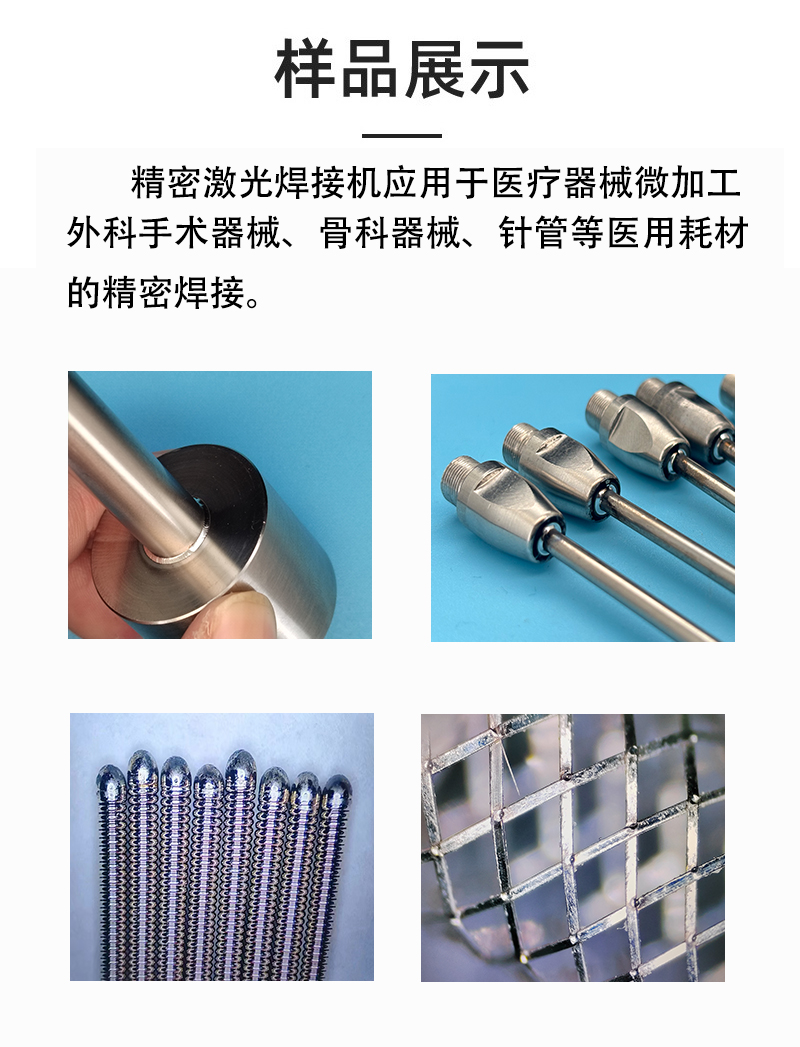 產品說明:適用于導絲、心臟支架、骨科螺釘(鈦合金)、牙科種植體的無縫焊接。 激光焊接具有熱影響區小、無物理接觸、精度高等特點,尤其適合對潔凈度和材料性能要求嚴苛的醫療產品。